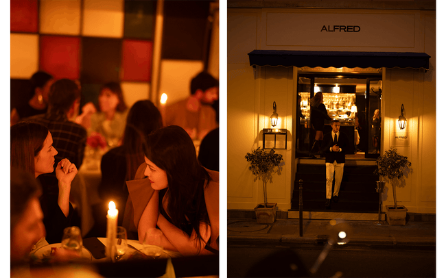 Situated in the heart of Paris on rue du Mont-Thabor, our friends enjoyed a very flatteringly lit dinner at Alfred, featuring a simple, but refined menu of delicious French classics, all amid a touch of a Mondrian interior.