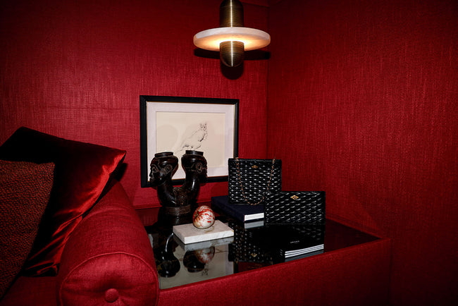 Trays of champagne fizzing in 1920s-style coupes and martinis, both straight up and dirty, greeted guests as they arrived at the Red Room gallery space of downtown design studio Apparatus. It’s known for its dramatic approach to lighting and space and thus made an ideal setting for our first foray into evening bags – just in time for the forthcoming festive season.