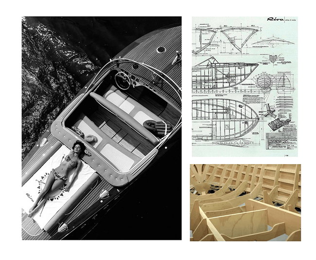 "We started with an archival Riva blueprint, inspired by the internal construction of a Riva speedboat. The pinnacle of Italian design and engineering, the Riva boat epitomises a golden age of travel, where the journey is just as exciting as the destination." - Hikari Yokoyama