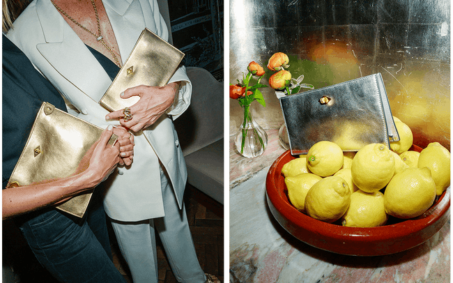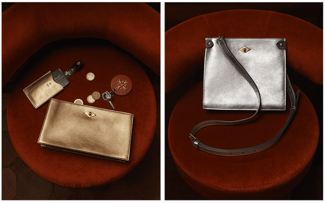 The capsule features handcrafted calfskin handbags and small leather goods in shimmering gold and silver tones, created in a special artisanal Laminatura process.