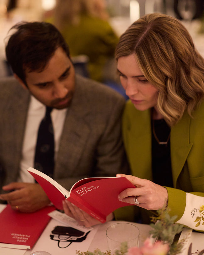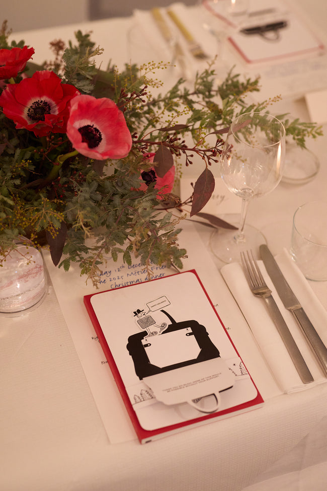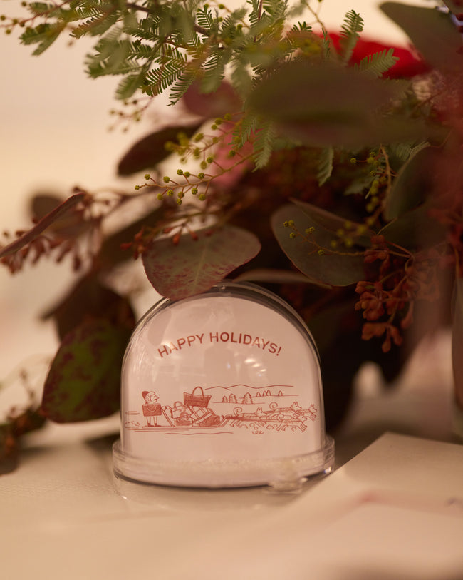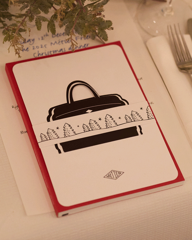 Each dinner place setting included our 2026 Diary, a fold-out holiday greeting, and a custom Métier snow globe to commemorate the occasion.