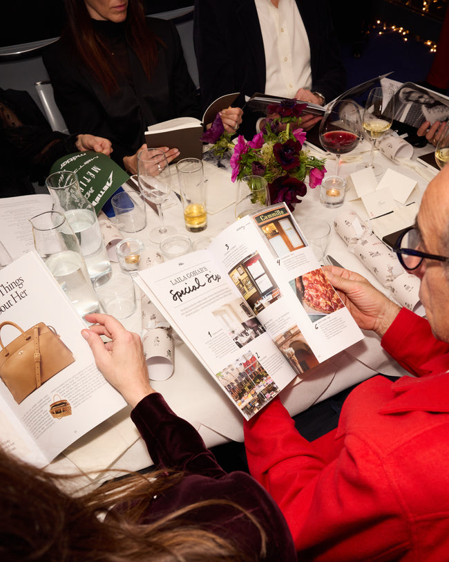 As it is the gift giving season, each place setting was laid with our 2025 Diary - a must-have accessory to carry through the year ahead - an issue of our bi-annual Zine, to entertain those en route to holiday destinations, and a hand calligraphed card writ with well wishes.
