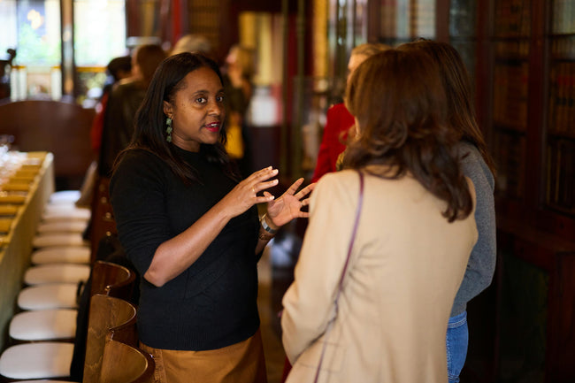 A thoughtful guest list of 32 women - makers, supporters, and collectors of art - were welcomed to the afternoon soirée with coupes of champagne in the museum’s cheerfully-hued drawing room.