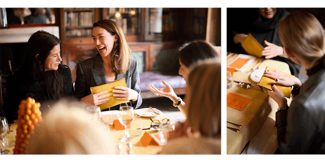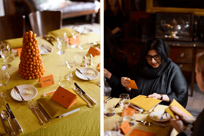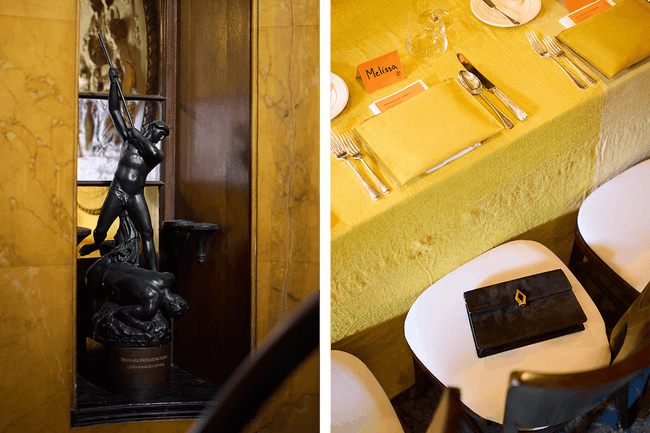 To commemorate the special moment in a special place, each setting included a matching yellow Abruzzo Suede Pouch - a heartfelt thank you created exclusively for all in attendance by Melissa. Inside, Melissa thoughtfully packed each pouch with a guide of favorite spots and hidden gems in London beloved by her and her co-hosts.