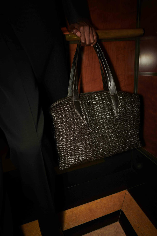 Woven by hand in an atelier outside of Florence, the Meribel Woven pays homage to Charlotte Perriand’s beloved chalet in the French Alps. The intricate tapestry, entirely made of leather, bears a rich grain and subtle shine, and is carefully crafted for a hardwearing durability while still maintaining Métier’s signature, and coveted, slouch.