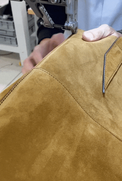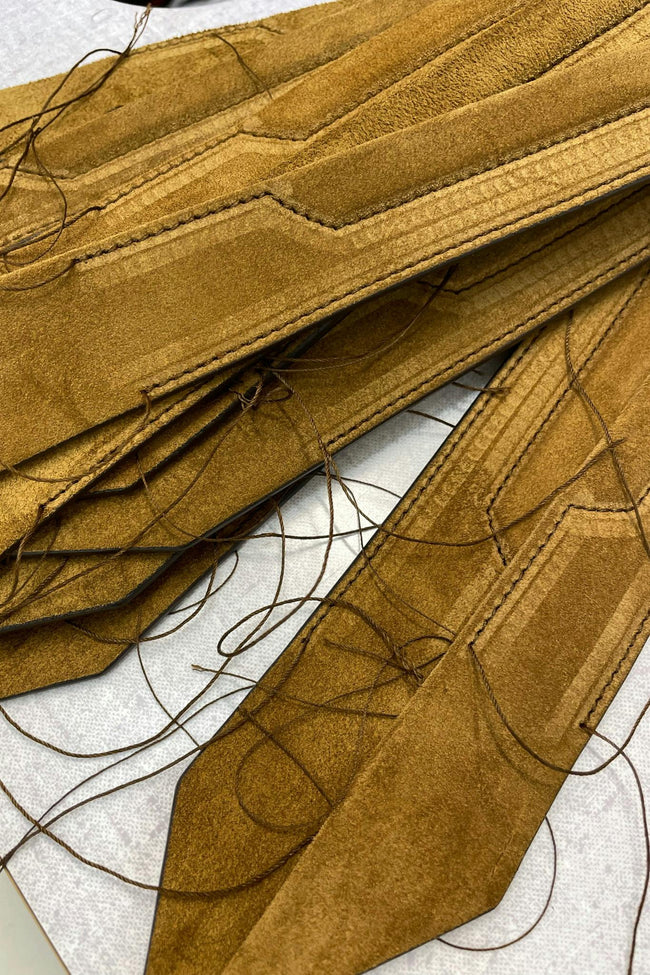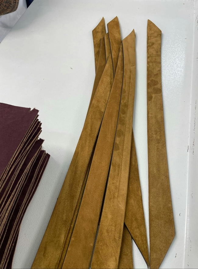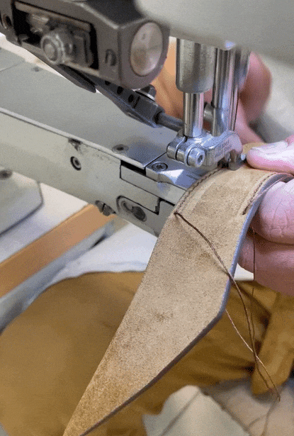 Part of our signature 11-step edge painting process, the edges of each panel of leather are sanded down before being primed and painted by hand.