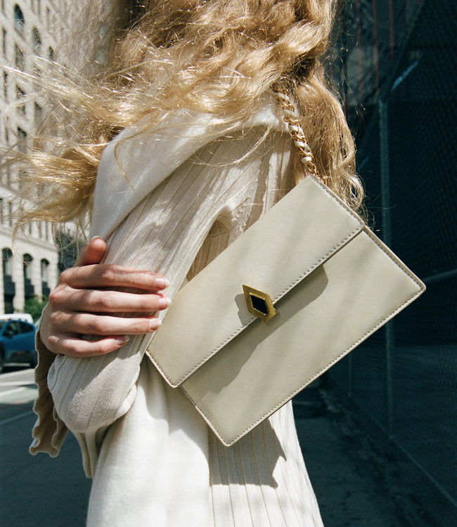 The PARALLEL 22 is our perfected version of a classic handbag for day-to-evening dressing. Carry it as a clutch or wear it with the detachable strap as a crossbody or shoulder bag. The hidden mirror under its flap adds an unmitigated ease when on the go.