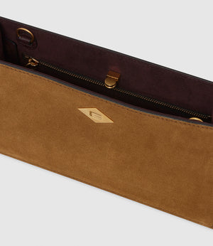 The calibre of our signature Italian suede is apparent in its softness and durability. Hardwearing even in poor weather – it was historically the preferred livery of cowboys after all – our suede is further strengthened by a special treatment to avoid pilling and fibre loss. The natural signs of wear that develop over time can be seen as a testament to the miles your bag has travelled.