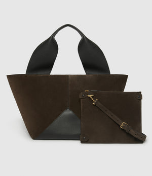 Fitted with a hidden exterior zippered compartment beneath the flap on either side to stow away your valuables as well as an interior snap pocket, there is more to the Market Bag than meets the eye. Its interior pouch comes with a detachable strap and clips out to double up as a crossbody bag. Lined with our signature Amarone-coloured Alcantara.