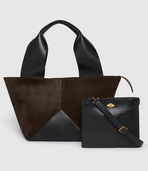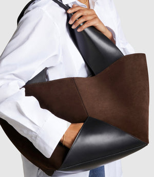 This Métier tote bag is quite literally a twist on a classic. Its base has been twisted and tailored to rest lightly against your body, while the wide and supple handles, attached from the corner points, engineer the perfect slouch and allow you to carry it with ease.