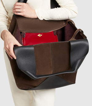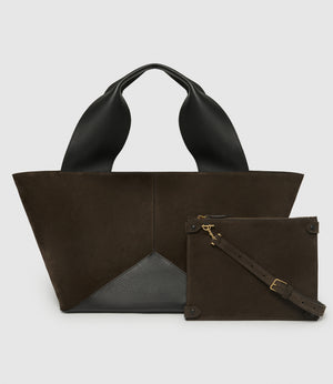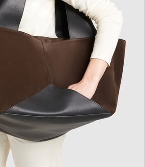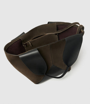 The Market Weekend Bag is quite literally a twist on a classic. The tote’s base has been twisted and tailored to rest lightly against your body, while the wide and supple handles, attached from the corner points, create the perfect slouch and allow you to carry it with ease.