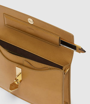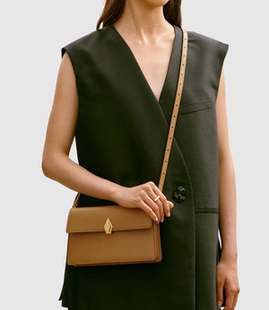 Larger than our Ease, but smaller than our Roma, the Parallel 22 is the perfect, classic handbag for daylight excursions into twilight affairs. Designed with even the smallest detail thought through, from internal compartments and easy to reach cardholder, to the feel of the diamond shaped clasp that’s subtly rounded at the edges to find your finger gently time and time again, and the sound the clasp makes when snapped closed - satisfying and secure. In addition, as a special feature, a leather sheath below the inside flap, reveals a convenient mirror framed in metal housing.