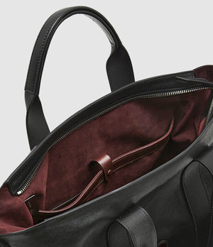 The newest addition to our Racer group, this versatile day bag marries the function of a classic briefcase with the ease and sportiness of a messenger. Designed for all-day excursions, The Racer Tote features myriad organisational pockets for your essentials, from an internal laptop pouch to an exterior zippered compartment and hidden magnetic pockets. An adjustable strap allows it to be carried crossbody or over one shoulder. Fits a 14" laptop.