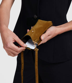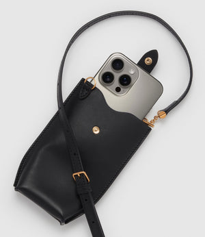 An elegant crossbody designed to carry your most important essentials. Features an adjustable and removable leather strap with solid brass hardware and a hidden interior card pocket for your most important card. Spacious enough to hold your keys, cards and a larger phone, the Minimalist is the perfect accessory for when you need only essentials at hand. Fits up to an iPhone 15.