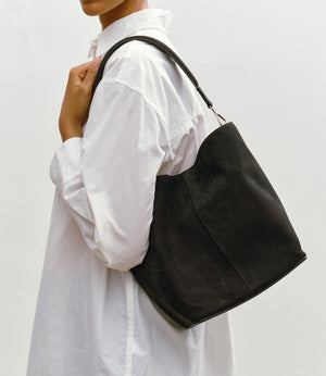 Handcrafted in Italy, this midsize bucket bag is designed with a clean, seamless exterior and a perfectly slouchy shape. Interior pockets and cardholders provide easy access to your things, ensuring you never have to dig.